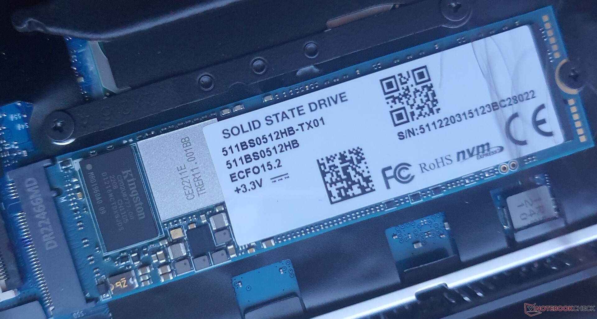 Tien Torx-schroeven (T5) moeten worden verwijderd om toegang te krijgen tot de interne onderdelen van het apparaat. Alleen de M.2 2280 SSD, evenals de 57 Wh, geschroefde batterij, kunnen worden verwisseld. Theoretisch kunnen het USB-dochterbord en de luidspreker ook relatief gemakkelijk worden verwisseld.