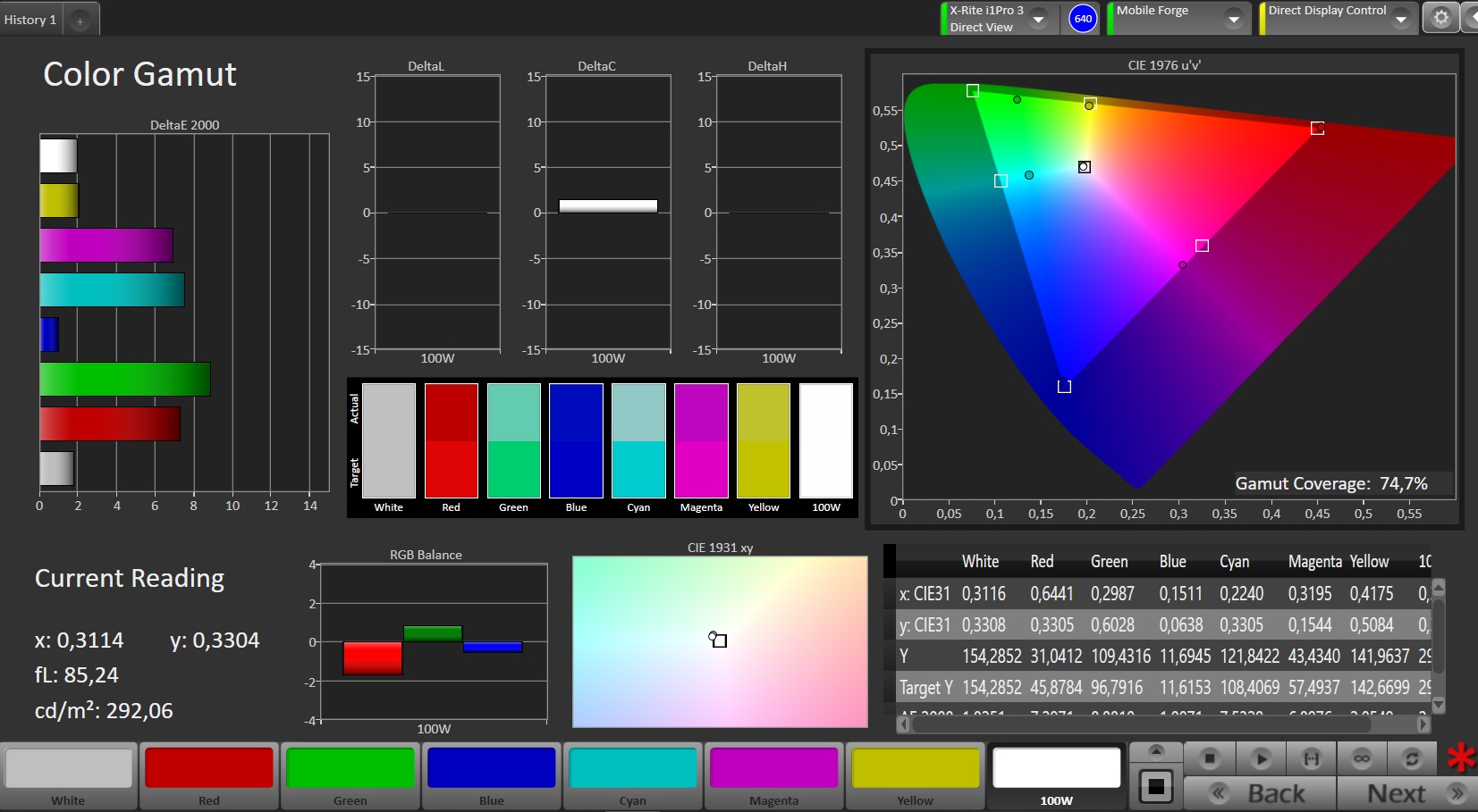 ΔE ColorChecker Calman: 1.03 | ∀{0.5-29.43 Ø4.78}