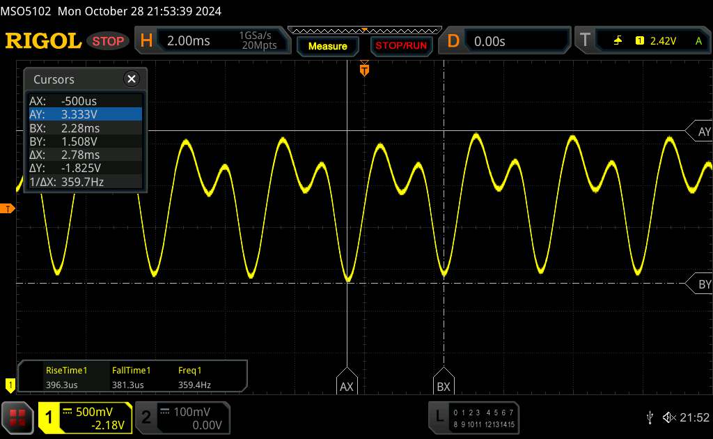 (+) | de hoge tonen zijn lineair (5.9% delta naar de vorige frequentie)