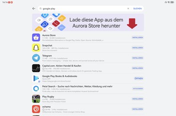 Wij hebben een van de methoden die in het artikel beschreven worden gebruikt op onze MatePad Pro 12.2, namelijk het installeren van de Aurora Store via de AppGallery app store van Huawei. De Aurora Store is een alternatief voor de Google Play Store, maar gebruikt de databases van laatstgenoemde voor apps en downloadt hun APK's rechtstreeks vanaf daar.