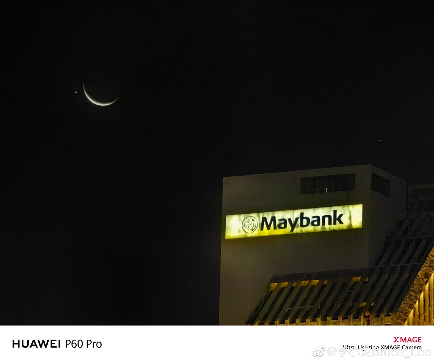 De premium handset wordt aangeprezen om een "F2.1 Large Aperture" lens, evenals een 90mm tele module met een "200x"(digitale) zoom. Dit potentieel voor prestaties bij weinig licht (geschat als verbeterd met tot 178% vergeleken met de P50 Pro) kan hebben geholpen met de duidelijke opnames van Venus achter de maansikkel met P60 Pro watermerken gepost naar Weibo door een Huawei executive.