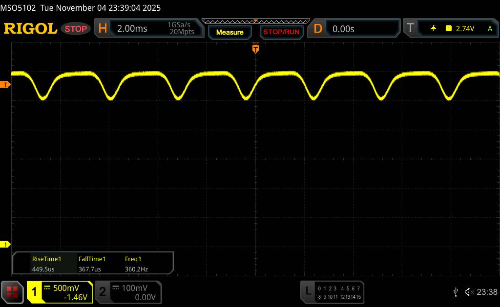 (+) | de hoge tonen zijn lineair (2.2% delta naar de vorige frequentie)