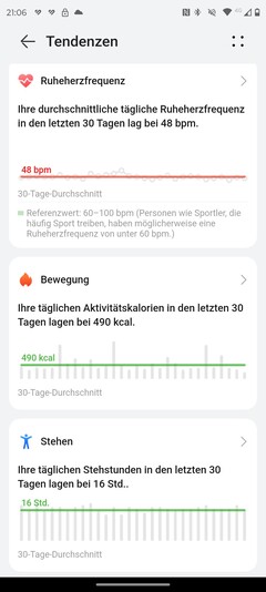 Er is niets veranderd tijdens de installatie in vergelijking met de gewone Watch 4 Pro. Met de software-update naar HarmonyOS 4.2 is het aantal functies van de Huawei Health app echter uitgebreid. Een voorbeeld hiervan zijn de trends.
