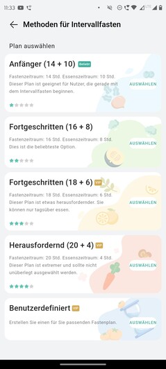 Ter ondersteuning biedt de app verschillende plannen voor intervalvasten en een voedingsanalyse is ook beschikbaar met een betaald Health+ abonnement. De trends geven een overzicht van de persoonlijke ontwikkeling gedurende 30 dagen. Dit gebeurt op verschillende gebieden, zoals stappen, trainingsminuten, slaapduur, hartslag in rust, verbrande calorieën, staande tijd, zuurstofverzadiging in het bloed en stress.