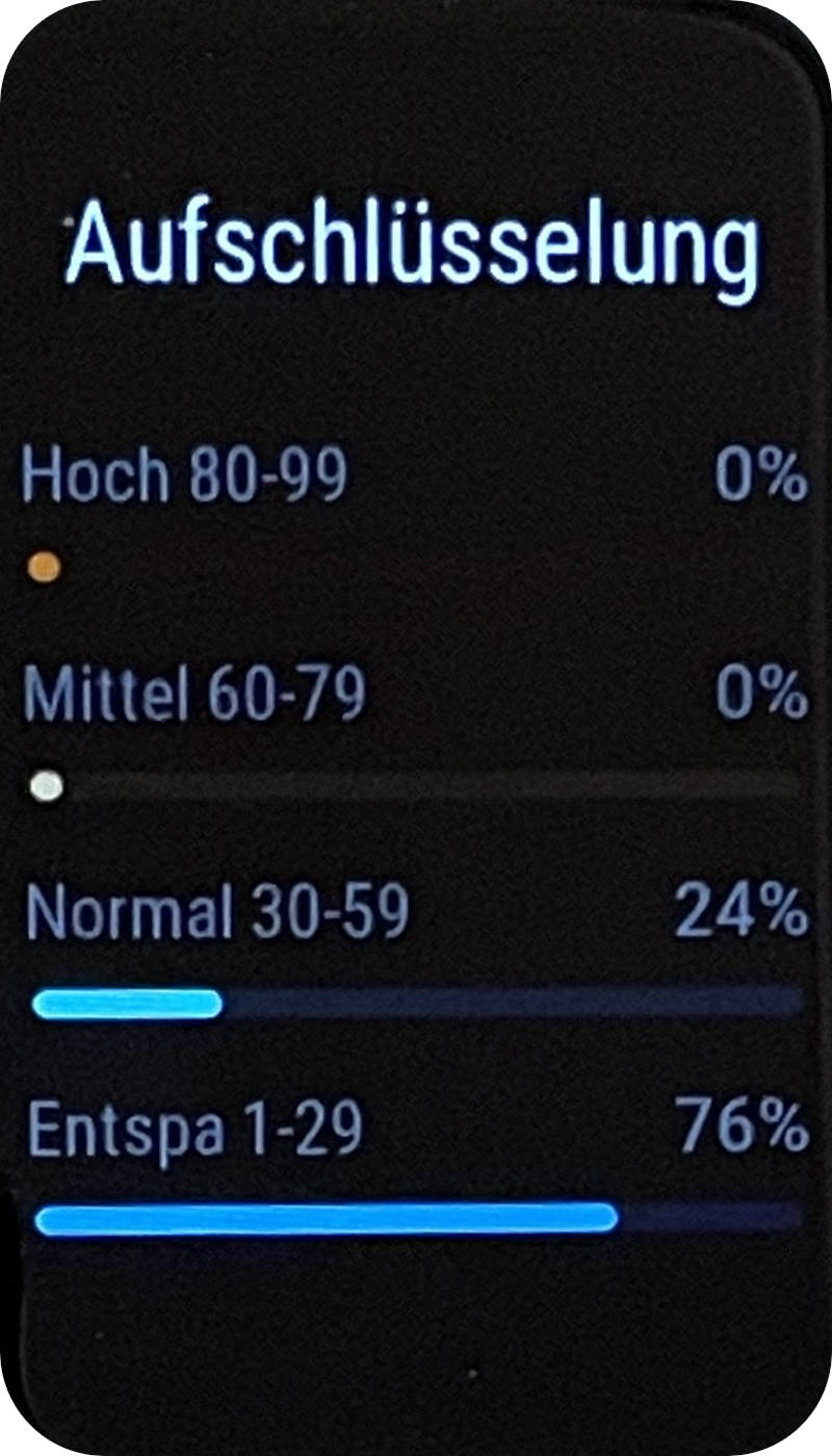 Het Watch Fit monitort de hartslag en maakt een stressgrafiek op basis van de hartslagvariabiliteit (HRV)