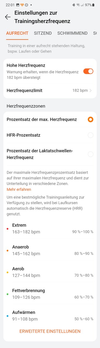 De Huawei Watch GT 4 kan meer dan 100 verschillende sporten volgen. Hardlopen is onderverdeeld in categorieën voor buiten, binnen en sportvelden. Roeien, golfen, crosstraining, langlaufen, snowboarden, bergwandelen en nog veel meer zijn nu beschikbaar. Afhankelijk van de activiteit worden verschillende soorten gegevens opgenomen en geëvalueerd. Wie buiten traint, moet wachten tot de GNSS-verbinding tot stand is gebracht voordat hij kan beginnen