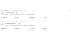 De hartslaggegevens werden verzameld tijdens een fietstocht en vergeleken met de Polar H10 borstband. In het rustbereik zijn de geregistreerde hartslagwaarden identiek en de cijfers veranderen nauwelijks tijdens de rit. De Watch GT 4 zit er altijd maar één hartslag naast, wat neerkomt op een afwijking van 0,17% - uitstekend.