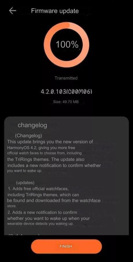 Versie 4.2.0.103(C00M06) brengt nieuwe TriRings wijzerplaatontwerpen naar de Watch GT 4, zoals te zien was in de update voor de Watch Ultimate. Deze geven de voortgang weer met uw stappenteller, matige tot zware training en actieve uren. Als u ze wilt uitproberen, kunt u ze downloaden in de Watch Face Store. Een andere functie van de Watch GT 4 is een melding die wordt gegenereerd wanneer het horloge detecteert dat u wakker wordt, waarbij u wordt gevraagd om te bevestigen dat u de gebeurtenis op dit moment wilt loggen. De release notes geven ook aan dat de gebruikerservaring bij het updaten van software is verbeterd.