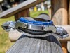 Een blauwe, glanzende lunette (niet draaibaar) zit op het zilveren deel van de kast. De bezel is versierd met witte cijfers en markeringen die vijf minuten uit elkaar staan. Wat betreft het gekozen materiaal heeft Huawei het over nano-tech keramiek. Het display wordt beschermd door saffierglas en de onderkant van het horloge, tegenover de arm van de drager, is afgewerkt met keramiek.