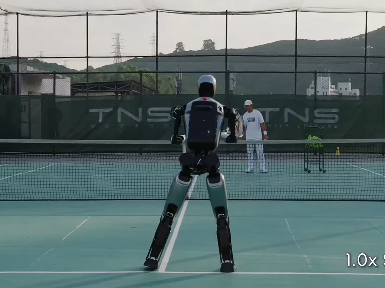 De humanoïde is de Walker S2 van Ubtech Robotics. Op de video is te zien hoe de robot een tennisracket vasthoudt en schoten pareert, die vermoedelijk afkomstig zijn van de menselijke speler op de andere helft van de baan.