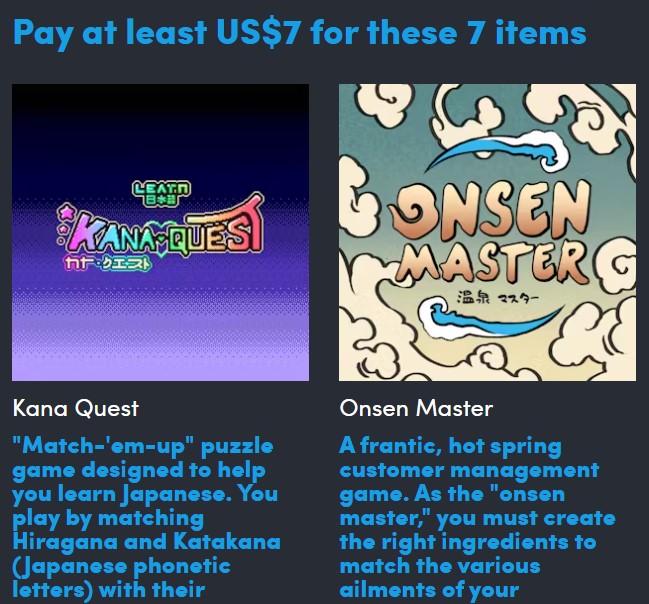 - Onsen Master: In dit casual indie-spel moet u warmwaterbronnen op het fantasie-eiland Izajima nieuw leven inblazen. U maakt ingrediënten om kwalen te bestrijden. Het spel heeft een verhaalmodus voor één speler en ook arcade coöp op gesplitst scherm en PvP-modi. Het spel heeft momenteel 26 recensies (46% positief) en kost $14,99 op Steam.