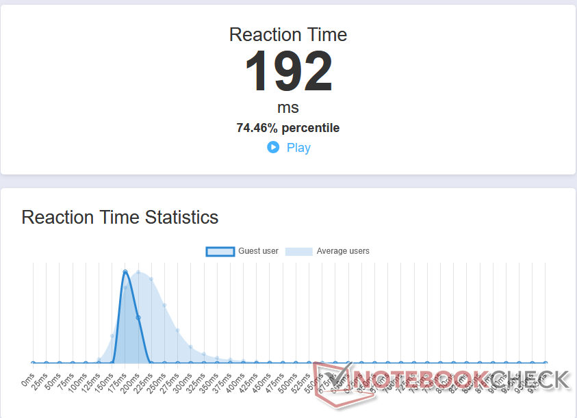 De reactietijden bij klikken met de linker- en rechtermuisknop waren laag, ondanks het feit dat de muis draadloos was. We behaalden ook een gemiddelde reactietijd van 192 ms in de Human Benchmark hulpmiddel.