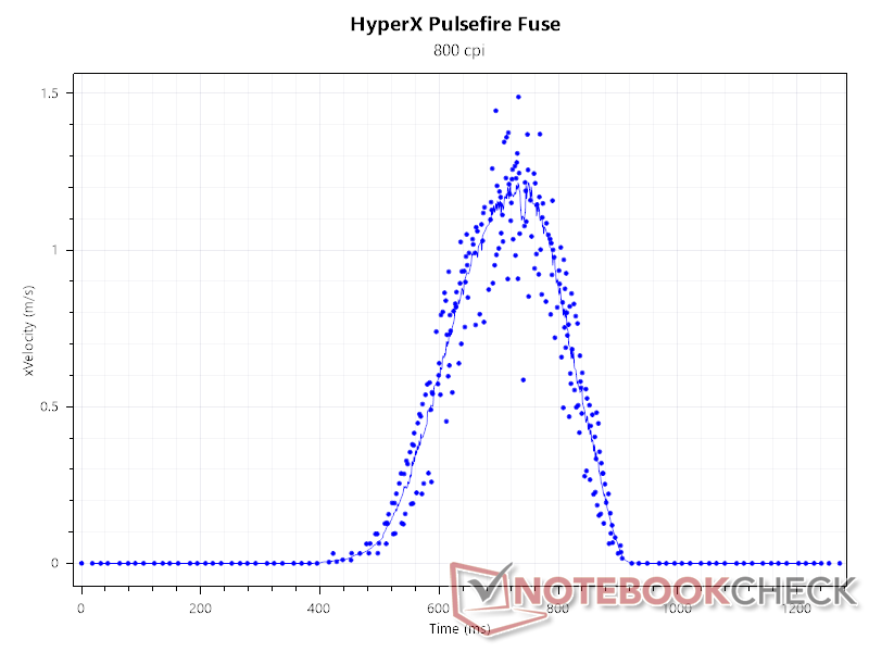 Het versnellen en vertragen van de Fuse Wireless terug naar de oorsprong liet fatsoenlijke SRAV-curves zien, wat aangeeft dat de muis inherent weinig tot geen sensorversnelling heeft die het gamen negatief zou kunnen beïnvloeden.