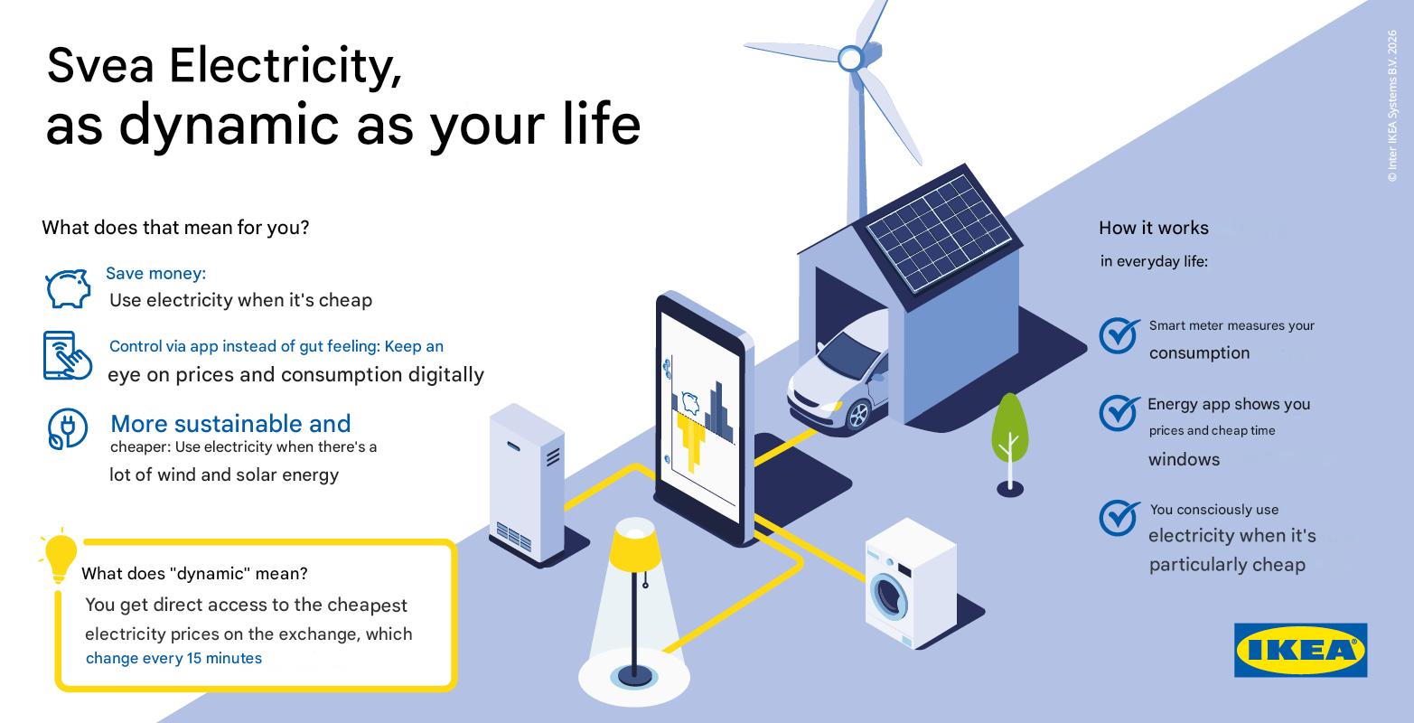 Met Svea Strom bieden IKEA en Svea Solar klanten directe toegang tot groothandelsprijzen voor elektriciteit. In het verleden waren deze alleen beschikbaar voor grotere klanten. Dit kan op meerdere manieren voordelig zijn voor klanten van Svea Strom. Ten eerste worden ze aangeslagen voor de energie die ze gebruiken in plaats van een vast maandelijks bedrag. Ten tweede kunnen gebruikers via de Svea Solar app de energieprijzen in de gaten houden, die elke 15 minuten veranderen. Bijvoorbeeld, tijdens een periode met veel zonne- of windenergie op het net, dalen de prijzen meestal. U kunt van deze lagere tarieven profiteren om uw energierekening te verlagen. Tot slot zouden klanten met een fotovoltaïsch (PV) systeem, een warmtepomp, batterijopslag of een elektrisch voertuig automatisch kunnen overschakelen naar tijden met lagere tarieven.