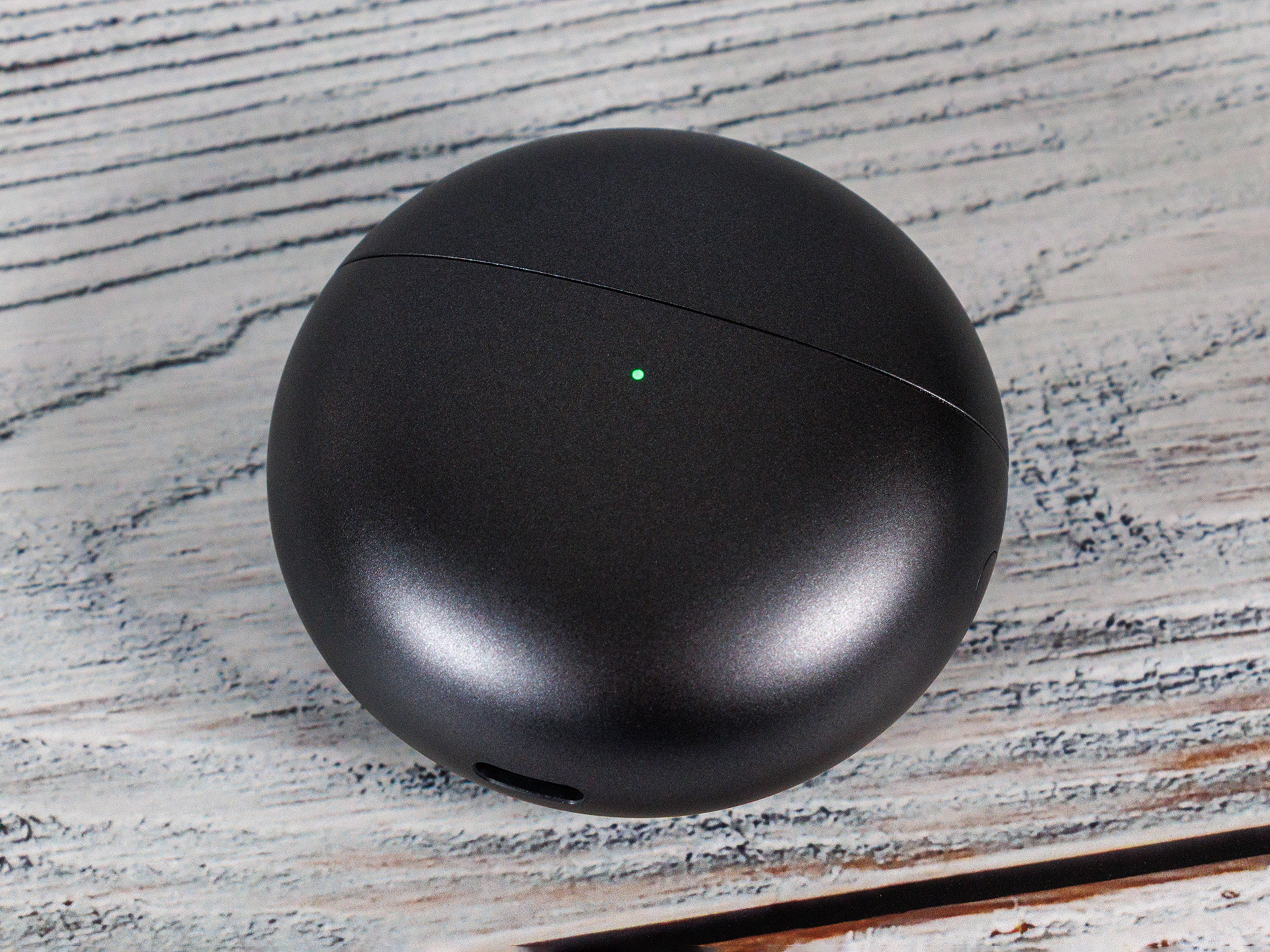 De oortelefoons worden magnetisch op hun plaats gehouden in het doosje. Net als zijn voorganger heeft ook dit etui een koppelingsknop en een status-LED.