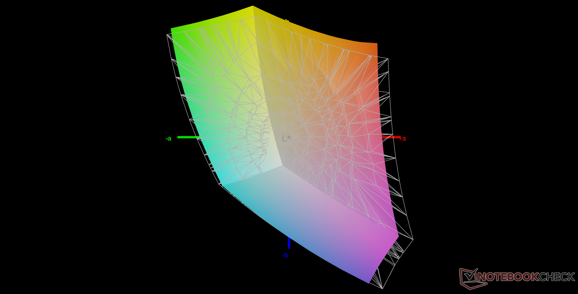 Infinix gebruikt een ander paneel voor zijn InBook X2 in vergelijking met de InBook Pro X1. Het nieuwere paneel is helderder, maar met verder vergelijkbare kleurweergave en contrastniveaus. Helaas zijn de zwart-wit en grijs-grijs reactietijden deze keer veel langzamer waardoor ghosting merkbaar is. Dit effect is het duidelijkst bij het bewegen van de cursor of bij het uitvoeren van snel bewegende games.
