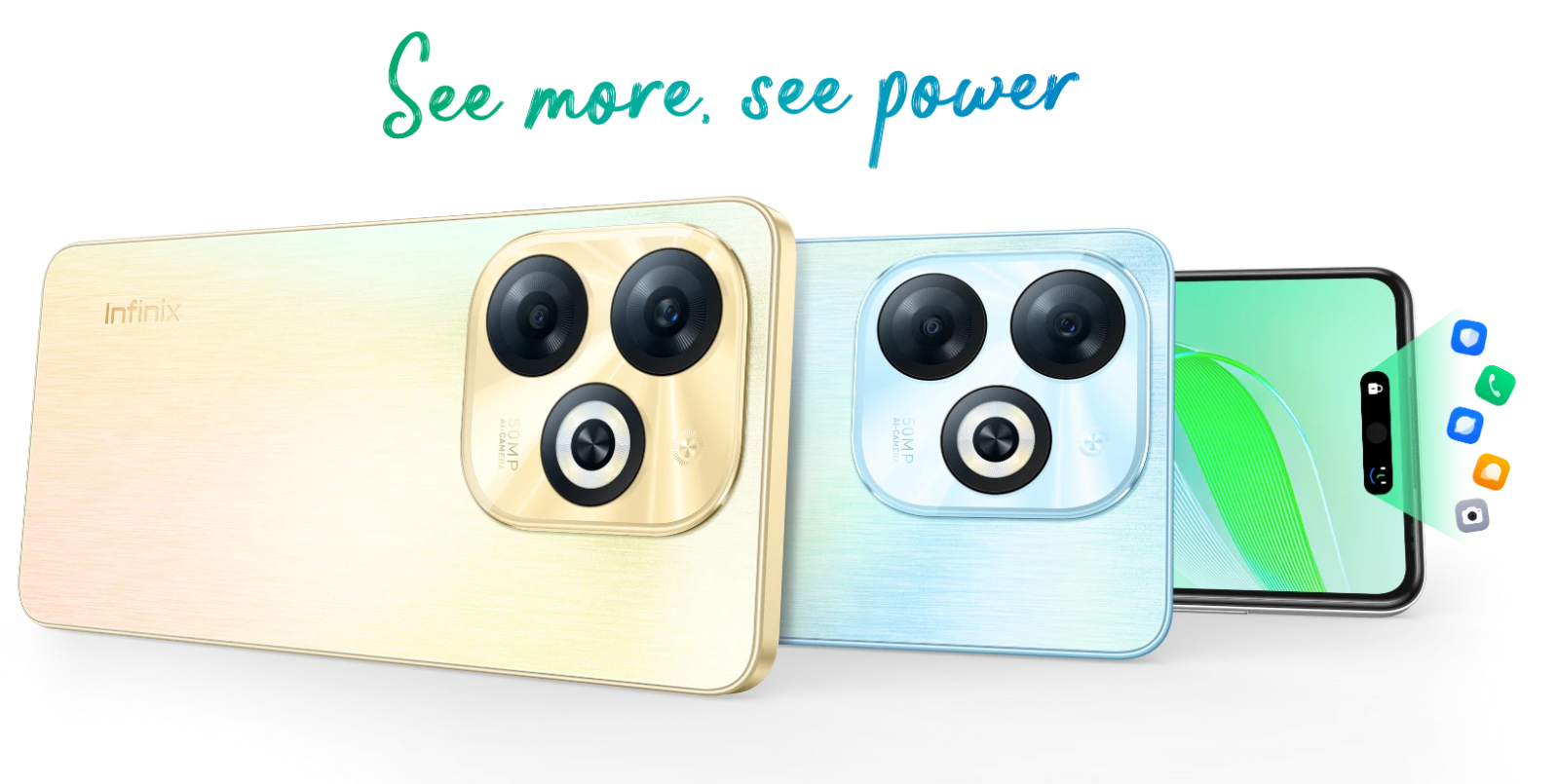 De 2 toestellen hebben verder echter exact dezelfde specificaties, tot en met de Helio G36 platform om een vlakke 6,6-inch 90Hz HD+ "Magische Ring" LCD-scherm aan te sturen. De 'nieuwe' Infinix smartphone daagt ook de Realme C53 met een camerabult die toevallig lijkt op die van een vlaggenschip iPhonehoewel een van de 'lenzen' eigenlijk een ringflits.