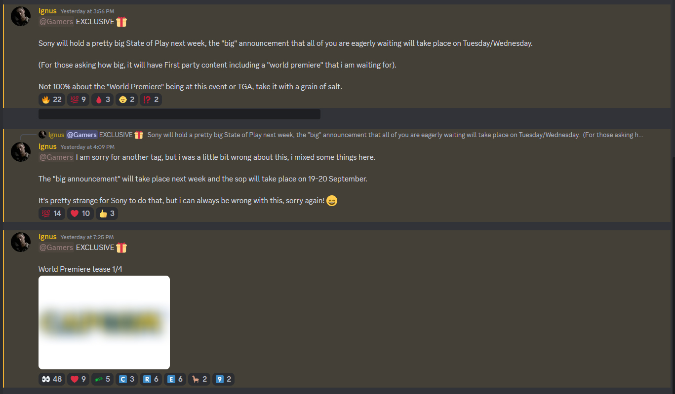 Ignus beweert verder dat de onthulling van de PlayStation 5 Pro gevolgd zal worden door het 2024 State of Play evenement. Hier zal Sony naar verwachting "first-party content" en een mogelijke "wereldpremière" laten zien Ignus merkt echter op dat het bedrijf de "wereldpremière" mogelijk overslaat op het komende State of Play-evenement. In plaats daarvan wordt het misschien verplaatst naar het 2024 Game Awards-evenement, dat gepland staat voor december.