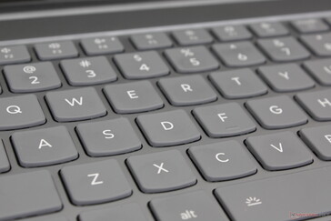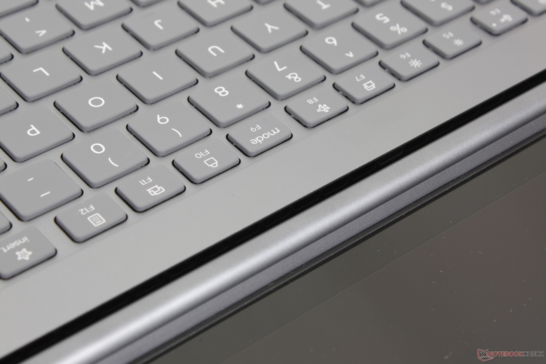 de toetsenindeling en pictogrammen zijn hetzelfde als op de Yoga Pro 7 14 G9, zelfs de witte achtergrondverlichting met twee niveaus. De toetsfeedback lijkt ook identiek te zijn, want het gekletter is nog steeds relatief luid, vooral bij het indrukken van de spatietoets. De type-ervaring is verder bevredigend en beter dan op de XPS 15 als u de voorkeur geeft aan luidere en stevigere toetsen.