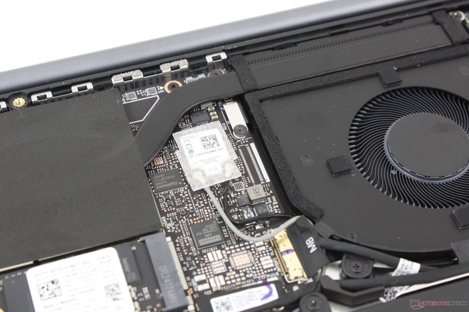 De 70 Wh batterij is kleiner dan die van veel andere 15-inch laptops, maar de efficiëntie van Intels nieuwe CPU-serie schijnt nog steeds door. De WLAN runtime kan meer dan 17 uur duren en is daarmee enkele uren langer dan concurrerende modellen van HP, Dell of Asus die op processors van een oudere generatie draaien. De runtimes zijn zelfs beter dan die van de Snapdragon-aangedreven Asus VivoBook S 15.