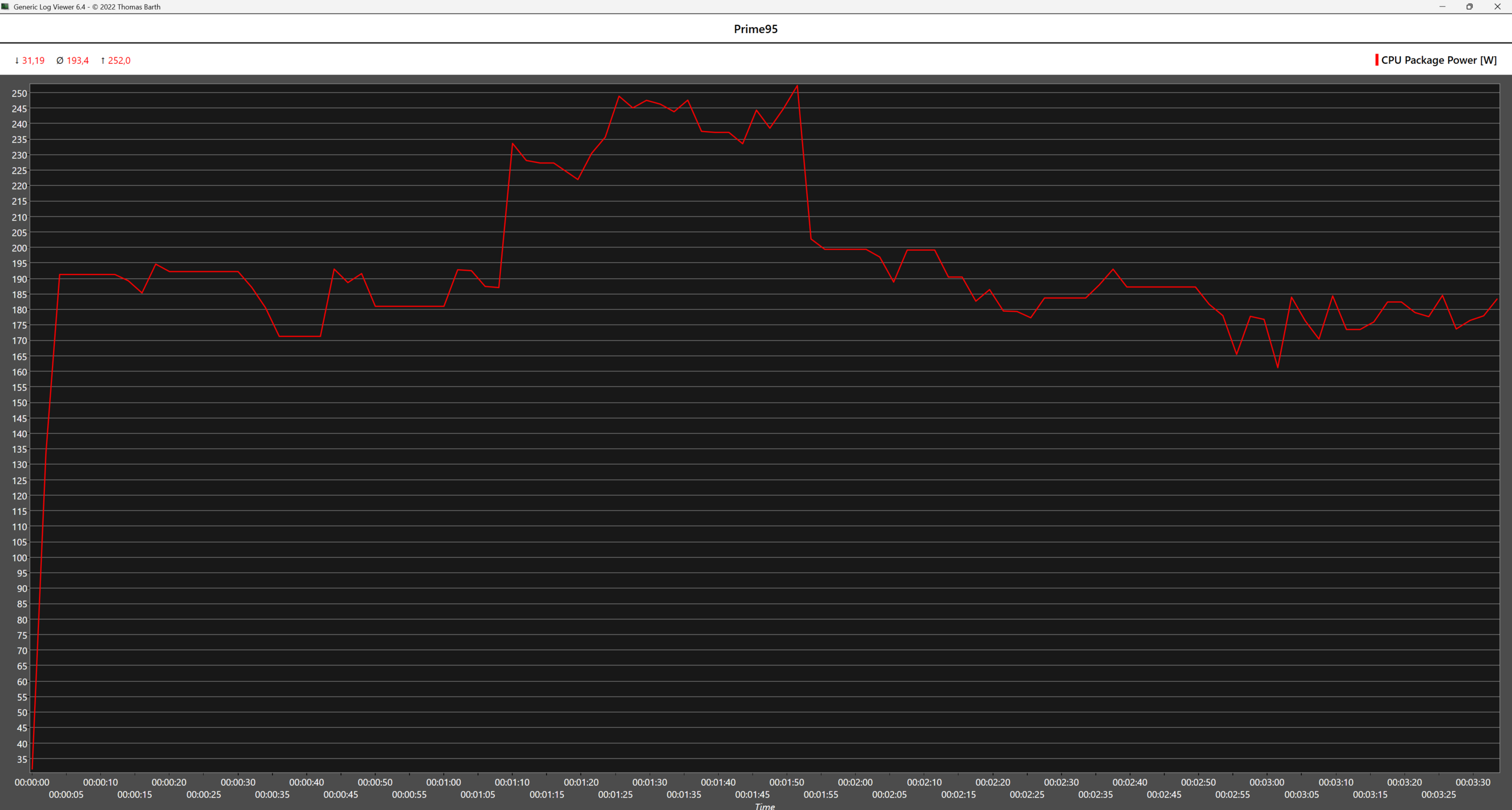 In scenario's waarbij alle cores worden gebruikt, zoals de multicore stress test van Cinebench 2024 of de Prime 95 grote FTT test, blijkt de AMD CPU minder energievretende te zijn, zelfs onder het High Performance energieprofiel. In Prime 95 verbruikt de AMD CPU gemiddeld 65 W minder in vergelijking met de Intel CPU, terwijl de Intel CPU ook in een thermische throttling-toestand komt en bijna de TJMAX bereikt in de eerste minuut van de test, waarbij de temperaturen daarna geleidelijk lager worden. Het is echter niet erg waarschijnlijk dat deze extreme gevallen zich in de echte wereld zullen voordoen.