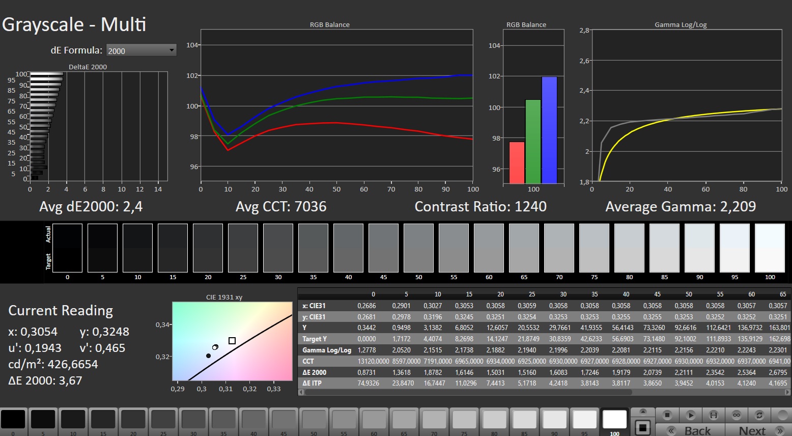 ΔE Greyscale Calman: 2.4 | ∀{0.09-98 Ø5}