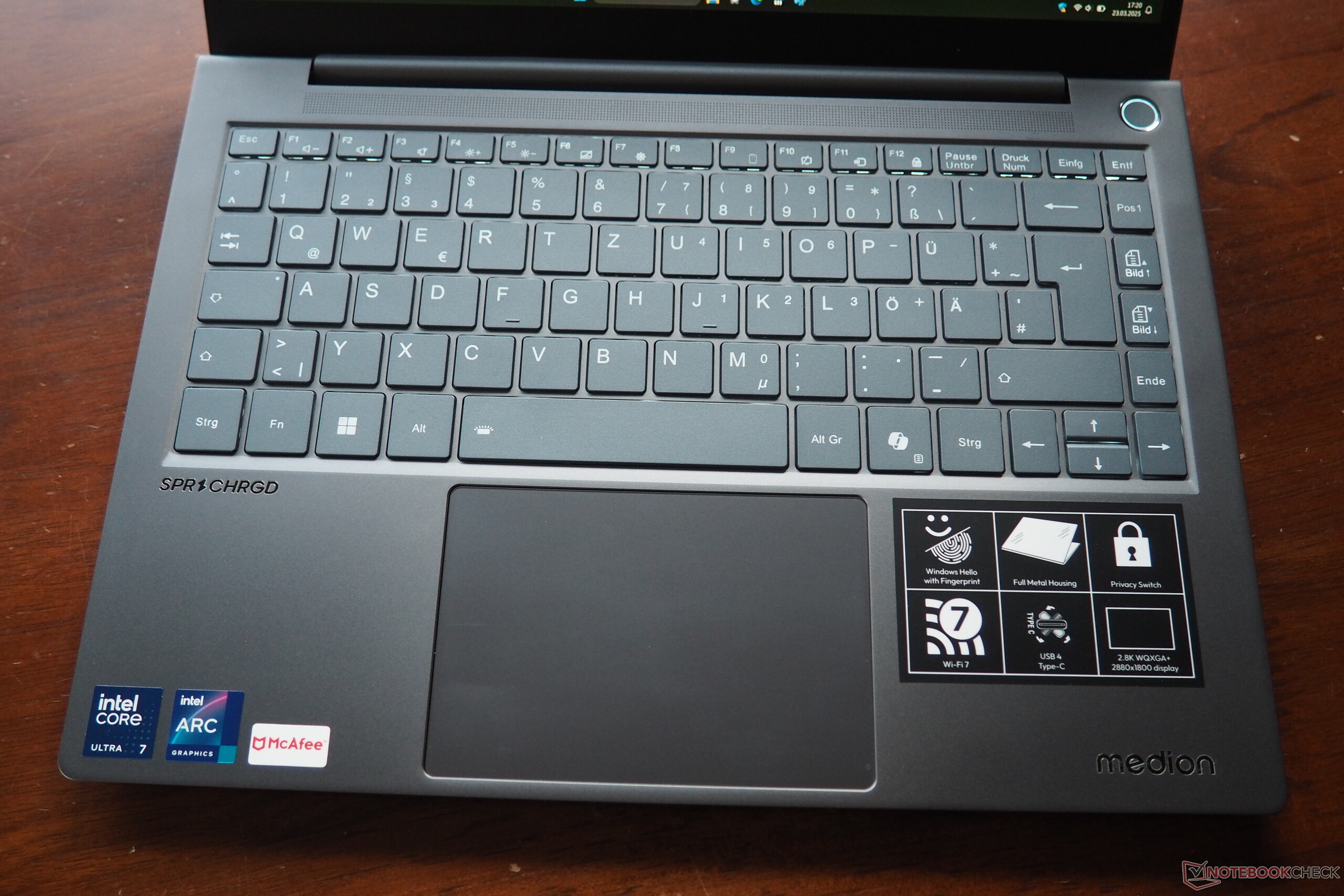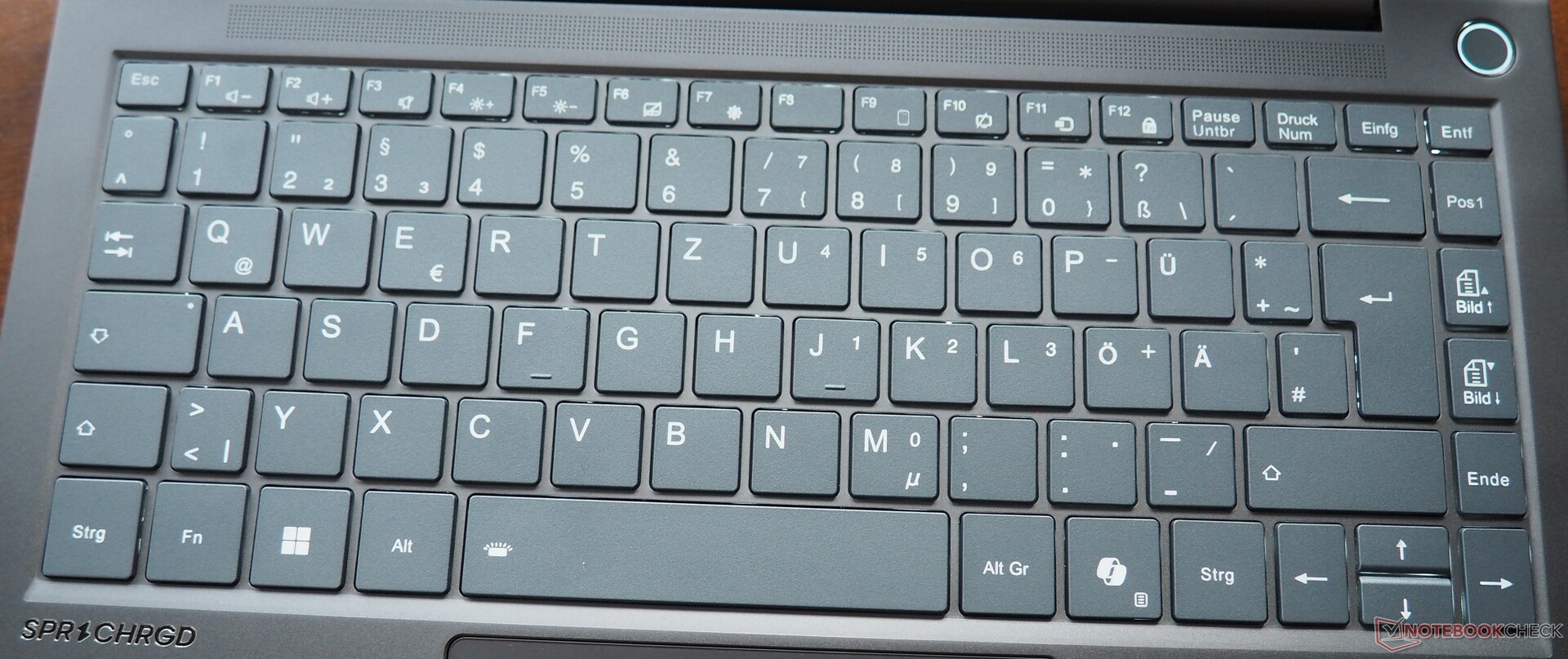 De SPRCHRGD 14 S2 is uitgerust met een toetsenbord dat geschikt is voor dagelijks gebruik met een vrij korte toetsaanslag. De indeling is waarschijnlijk een kwestie van smaak gezien de indeling van Medion langs de rechterkant en vereist een zekere mate van gewenning. Er is witte achtergrondverlichting (twee niveaus) zodat u het apparaat in donkere omgevingen kunt gebruiken.