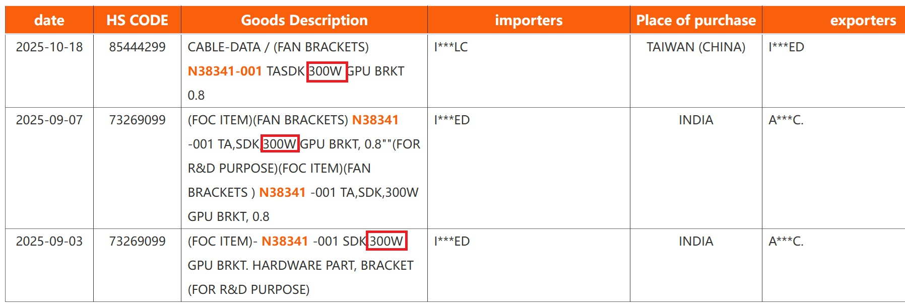 Dit gezegd hebbende, suggereren recente verzendlijsten dat Intel binnenkort een circa 300 W kaart zou kunnen introduceren. De reeks, die in de afbeelding hieronder 'N38341-001' wordt genoemd, komt overeen met recente onderdeelnummers van Intel desktop GPU's. Gezien het relatief hoge wattage dat wordt genoemd, lijkt het erop dat de Arc B770 in dit stadium een waarschijnlijke kandidaat is.