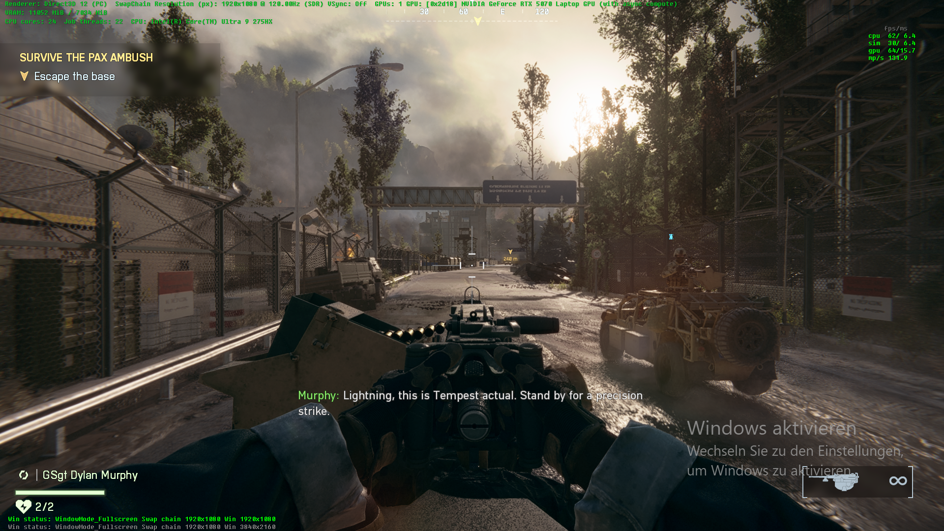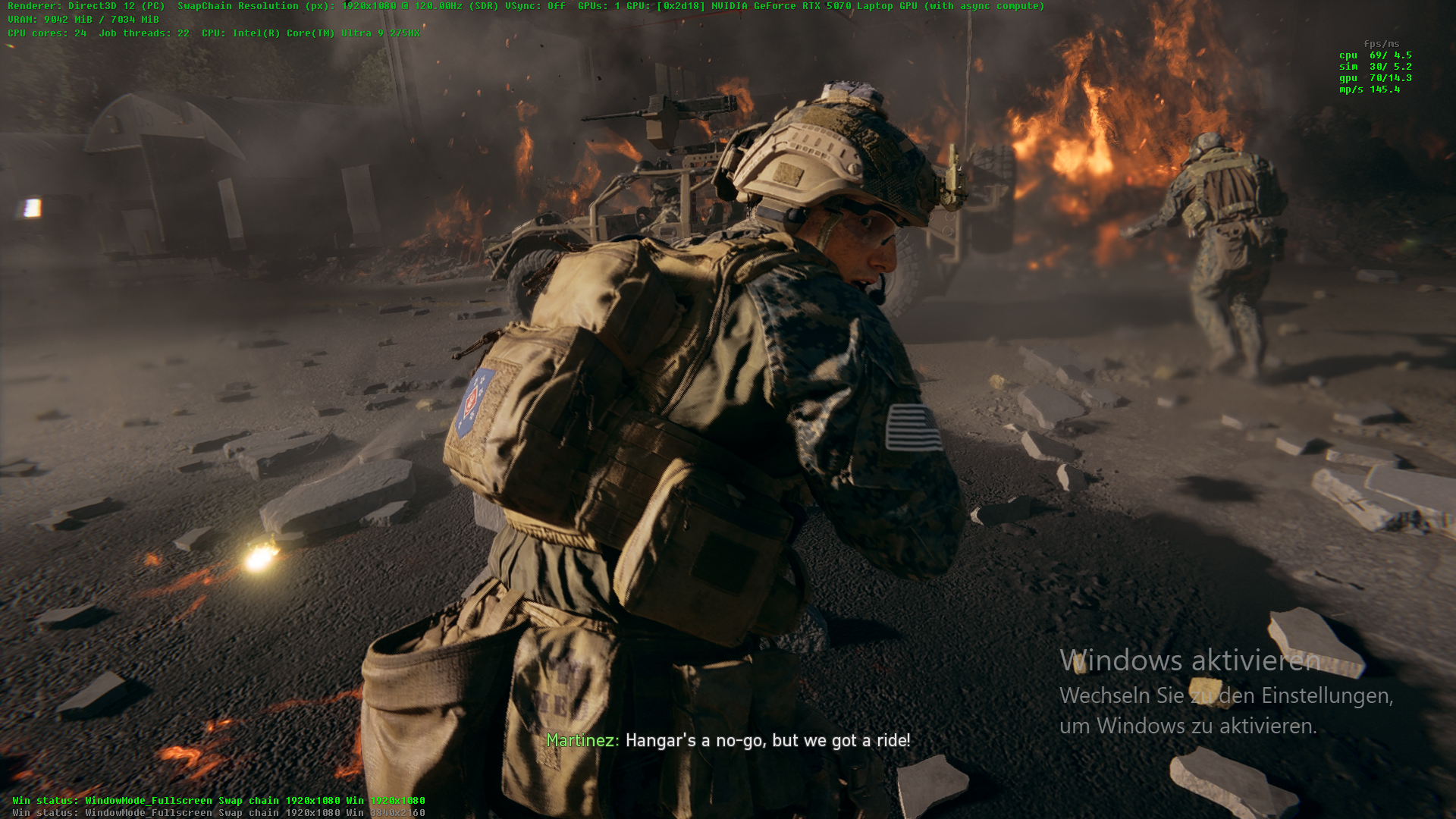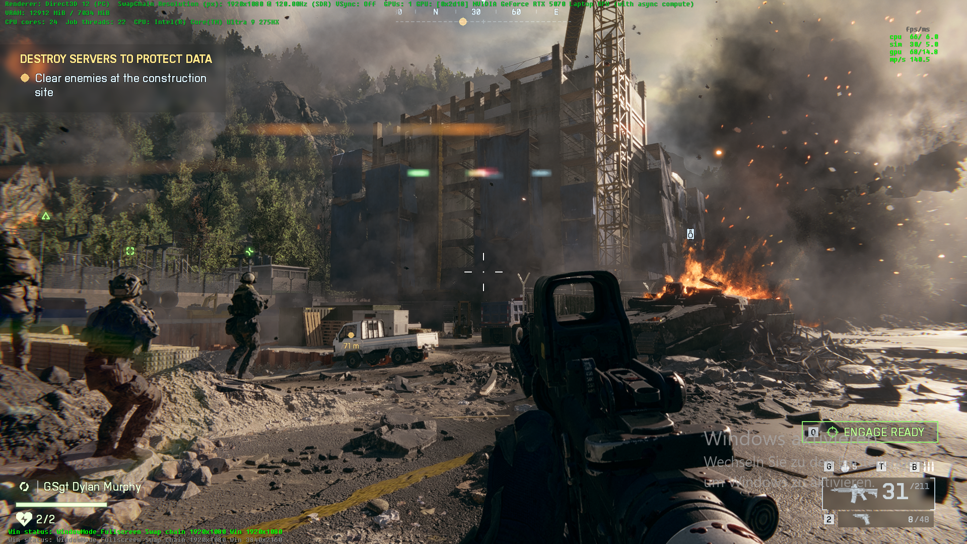 Voor multiplayerwedstrijden is er een verschil of u kleinschalige of grootschalige gevechten speelt. Een kleinschalig gevecht is geen probleem in QHD en de prestaties waren stabiel op de RTX 5070. Dit verandert zodra u deelneemt aan een grootschalig gevecht, waarbij het gedrag identiek is aan de campagne en de prestaties binnen een paar minuten merkbaar afnemen tot het punt waarop u niet meer vloeiend kunt spelen. Als u respawwnt, is de situatie beter, maar de prestaties dalen weer snel.