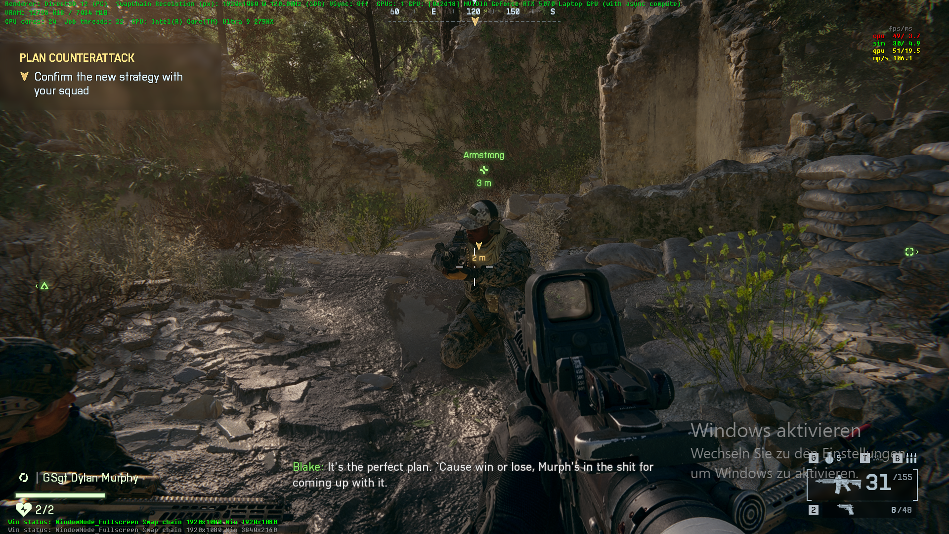 Als u overschakelt naar de QHD-resolutie, toont het spel een VRAM-waarschuwing en we kunnen ook zien dat het VRAM tijdens de benchmarkrun volloopt en zelfs de 8 GB overschrijdt. Dit resulteert in geïsoleerde stotteringen, maar om eerlijk te zijn is dit geen groot probleem voor dit type spel. Naast de benchmark hebben we ook de campagne gespeeld met deze instellingen (zonder DLSS) en we hebben niet echt ernstige stotteringen opgemerkt die onze spelervaring zouden beïnvloeden.