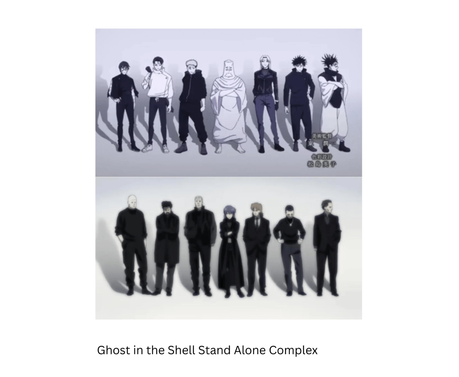 Een andere scène, waarin Kenjaku Kaori's lichaam bewoont terwijl hij Yuji draagt, is vergeleken met Egon Schiele's schilderij Dead Mother uit 1910, een werk dat nauw verbonden is met thema's als dood, kwetsbaarheid en gebroken ouderschap. In de video wordt beweerd dat deze verwijzingen niet gewoon visuele versieringen zijn, maar bewuste keuzes die het emotionele gewicht van de personages en de donkerdere thema's van de Culling Game arc weerspiegelen.