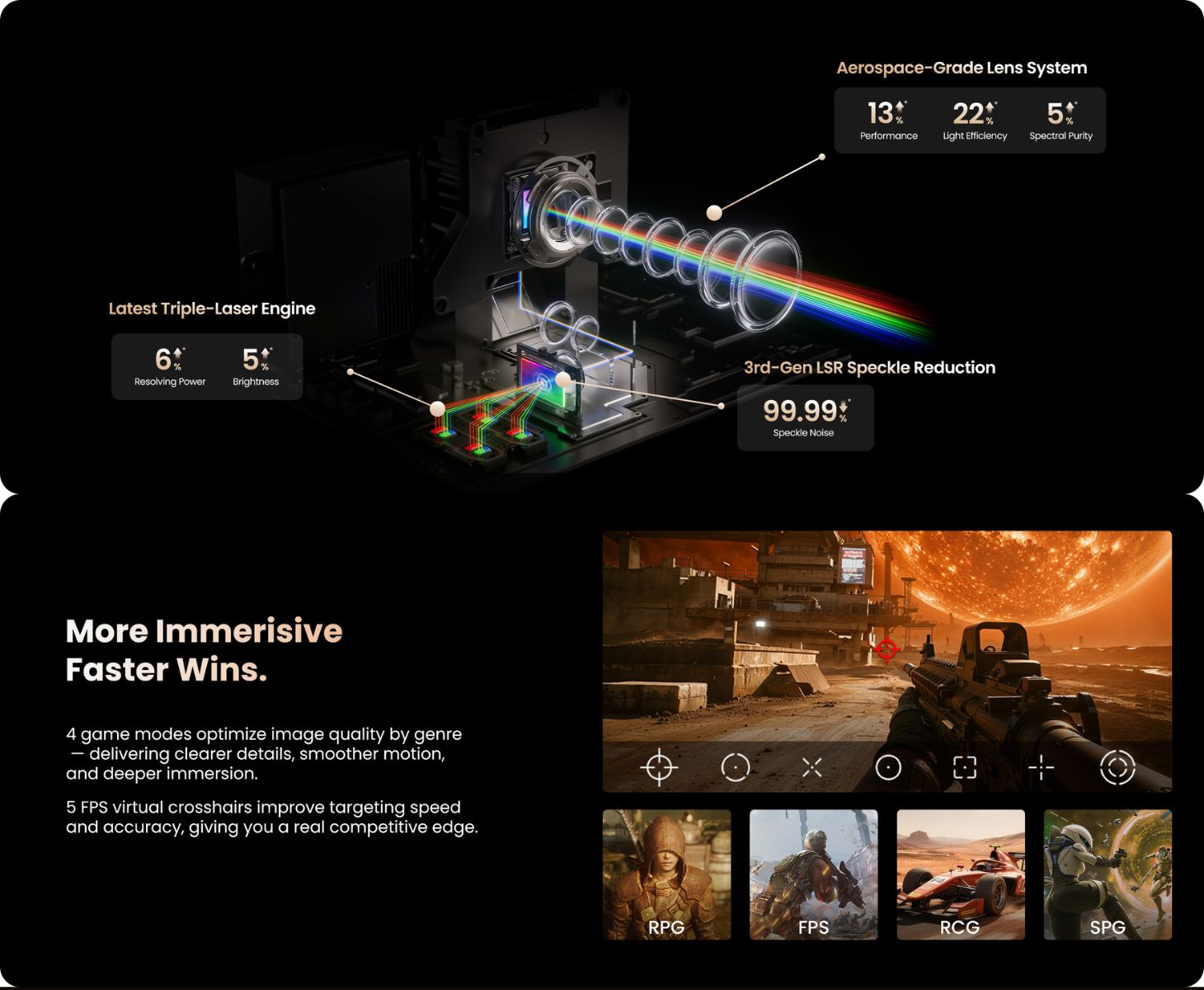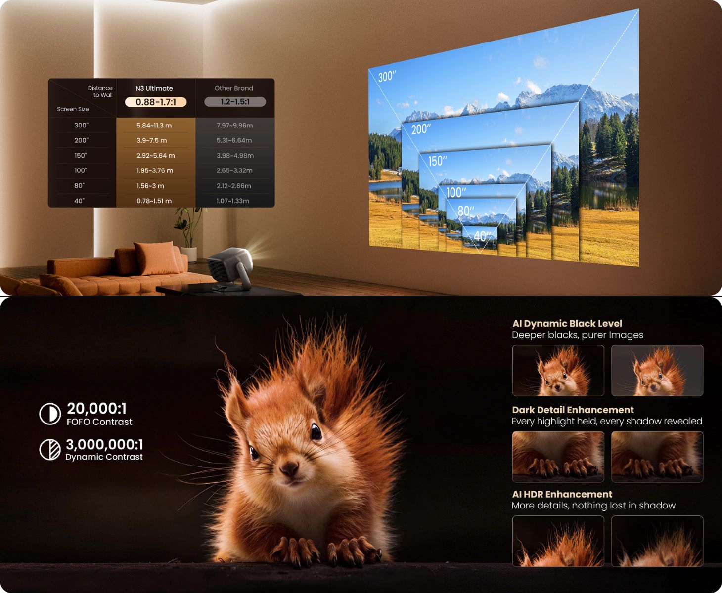 Wat betreft beeldkwaliteit maakt de N3 Ultimate gebruik van een tri-laser lichtbron en levert 4K resolutie met een geclaimd 110% BT.2020 kleurengamma en Delta E van ongeveer 0,7. De projector heeft ook een contrastratio van 20.000:1 en ondersteunt Dolby Vision en HDR10, samen met Dolby Audio en DTS-X voor geluidsuitvoer.