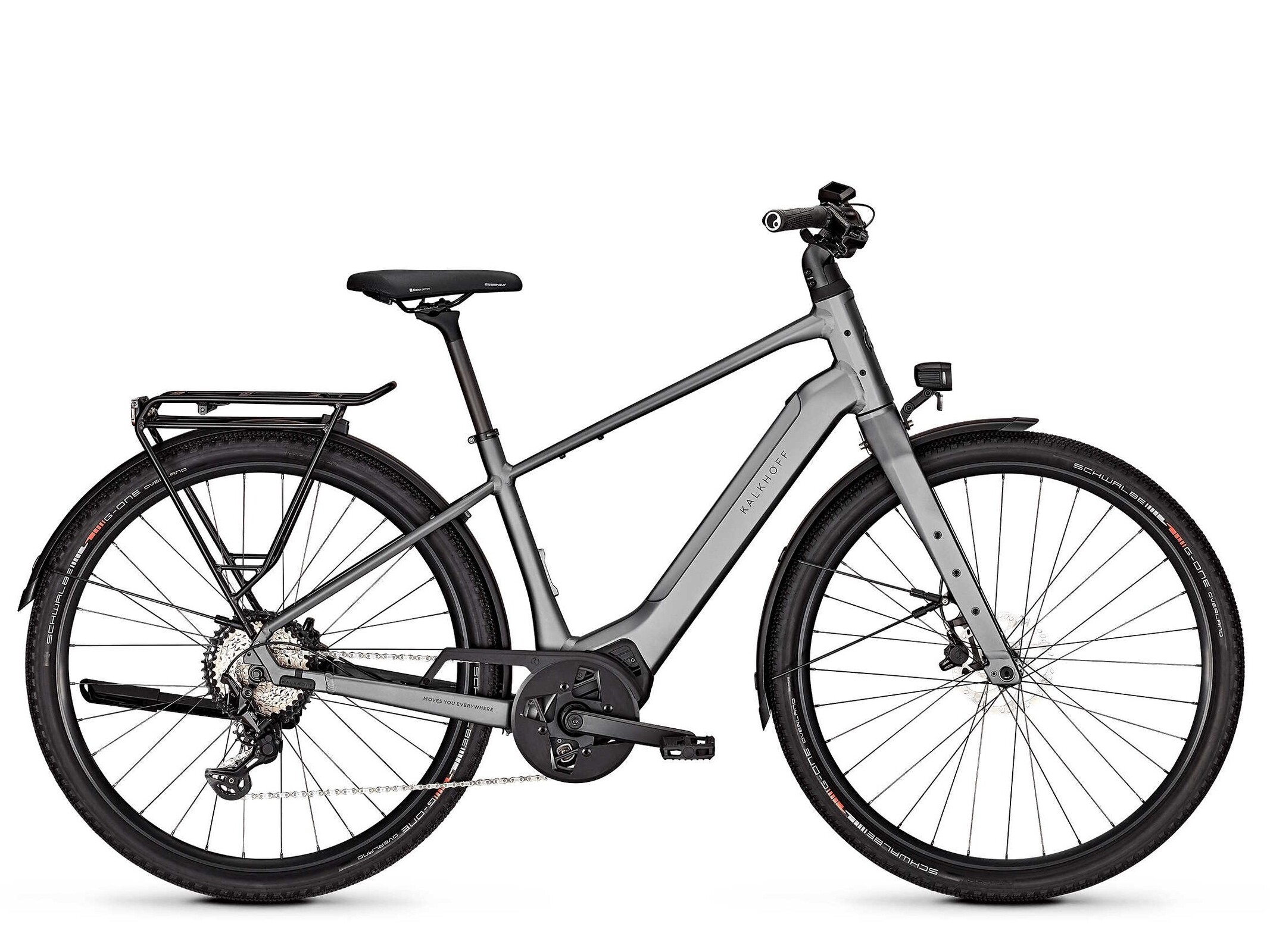 Zowel de koplampen als het achterlicht zijn van Herrmans. Er is een kickstand achter verkrijgbaar en er worden ook spatborden meegeleverd. Kalkhoff installeert een Bosch Performance Line SX motor, die iets compacter en lichter is, omdat het koppel beperkt is tot 55 Newtonmeter, maar dit zou niet echt een grote beperking moeten zijn bij dagelijks gebruik. Er is een Bosch Purion 200 kleurenscherm gemonteerd en de Bosch CompactTube accu heeft een capaciteit van 400 Wh. De e-bike wordt aangedreven via een ketting; het Shimano Deore XT derailleursysteem heeft 12 versnellingen. Voor en achter zitten hydraulische Magura MT30-remschijven van 160 millimeter, die bedoeld zijn om onder alle weersomstandigheden te functioneren en dus in geval van nood ook onder natte omstandigheden zeer krachtig kunnen remmen.