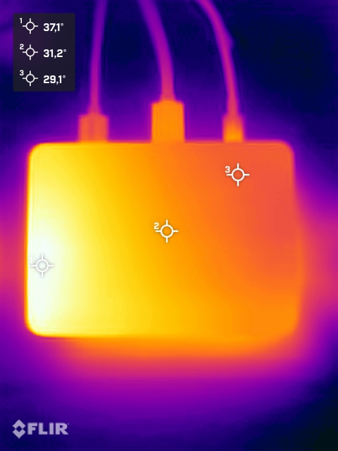 De behuizing van de Khadas Mind Pro warmt slechts licht op wanneer deze niet gebruikt wordt. Dankzij de metalen constructie wordt de opgewekte warmte ook relatief gelijkmatig over het oppervlak verdeeld. Onder belasting neemt de temperatuur van de behuizing aanzienlijk toe in vergelijking met de ruststand. Desondanks blijven de gemeten oppervlaktetemperaturen van iets meer dan 40 C over het algemeen binnen een niet-kritisch bereik.
