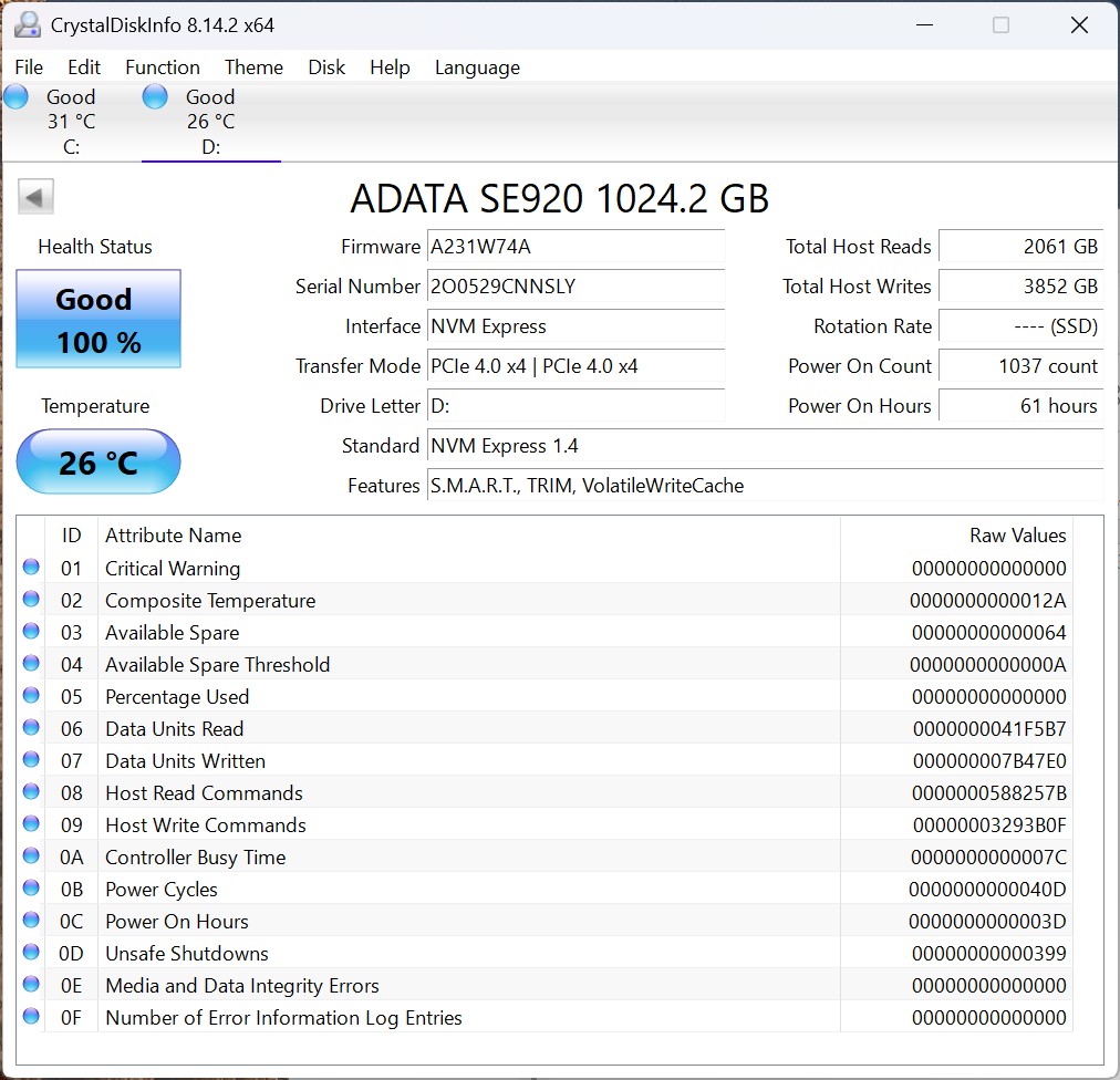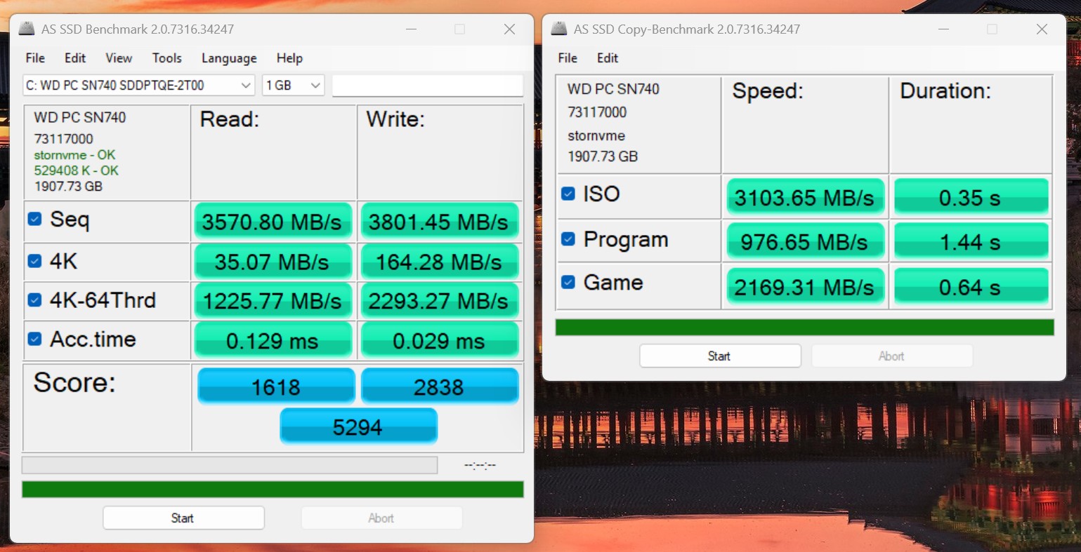 | Connectivity - USB 3.x / USB4 / TB - AS SSD Seq Read Test (1GB) | |