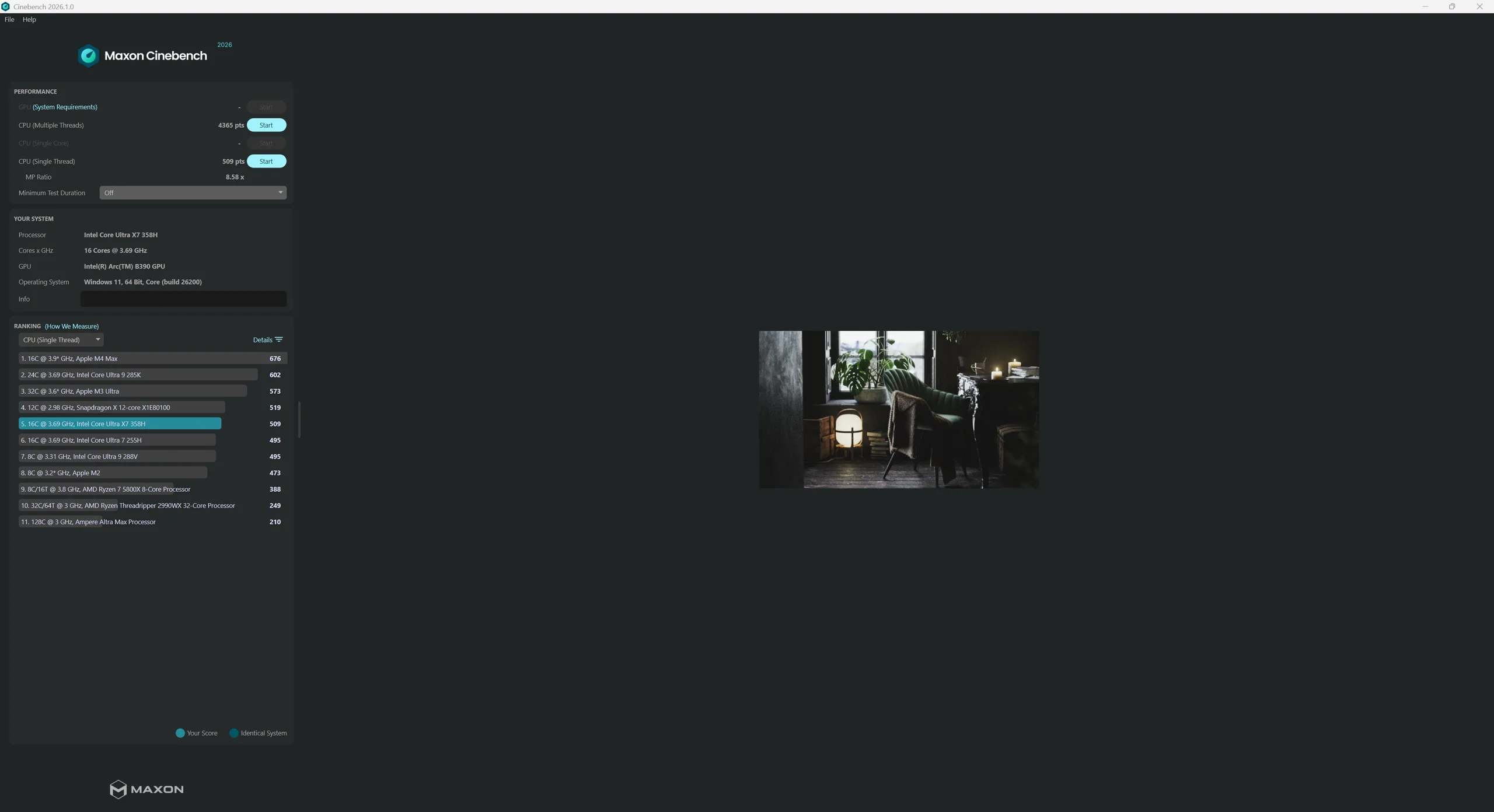 In synthetische benchmarks laat de processor zien dat hij de Ryzen AI 9-processoren van AMD kan bijhouden. Toepassingen zoals renderen of videobewerking profiteren van het hoge aantal cores en de verhoogde kloksnelheden. Vergeleken met oudere modellen uit de Mind-serie is de prestatiestijging dan ook vooral significant bij zeer parallelle werklasten.
