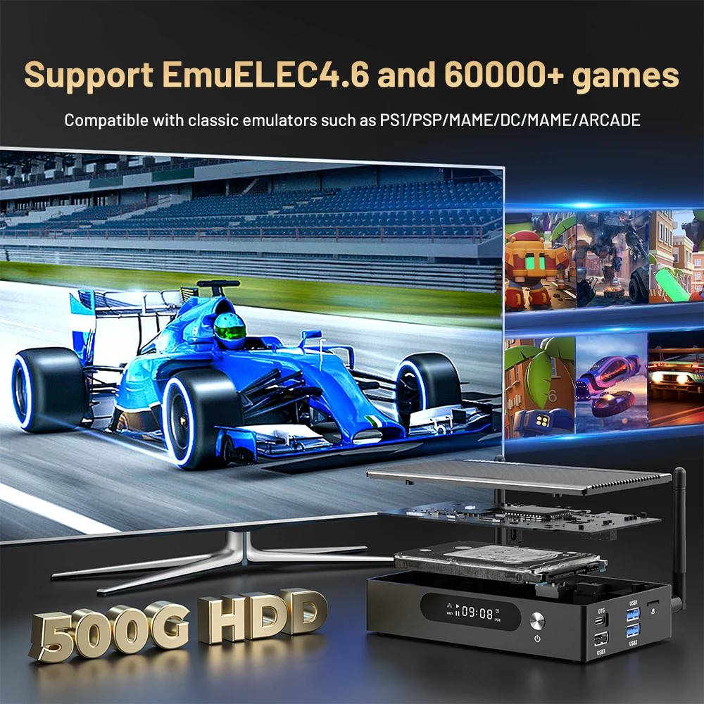 Draadloze netwerken zijn toegankelijk via WiFi 6, en het aansluiten van accessoires is mogelijk via Bluetooth 5.0, twee USB 3.0 poorten of een USB 2.0 poort. Een optische audio-uitgang voor het aansluiten van een soundbar is ook beschikbaar, net als HDMI, een AV-poort en Ethernet voor bekabelde netwerkverbindingen. De retro console 5,63 x 3,54 x 1,30 inch en kan via import van Aliexpress besteld worden voor $108 exclusief verzendkosten of invoerkosten. Tot slot moeten potentiële kopers zich bewust zijn van de in principe onbestaande garantie en klantenondersteuning.
