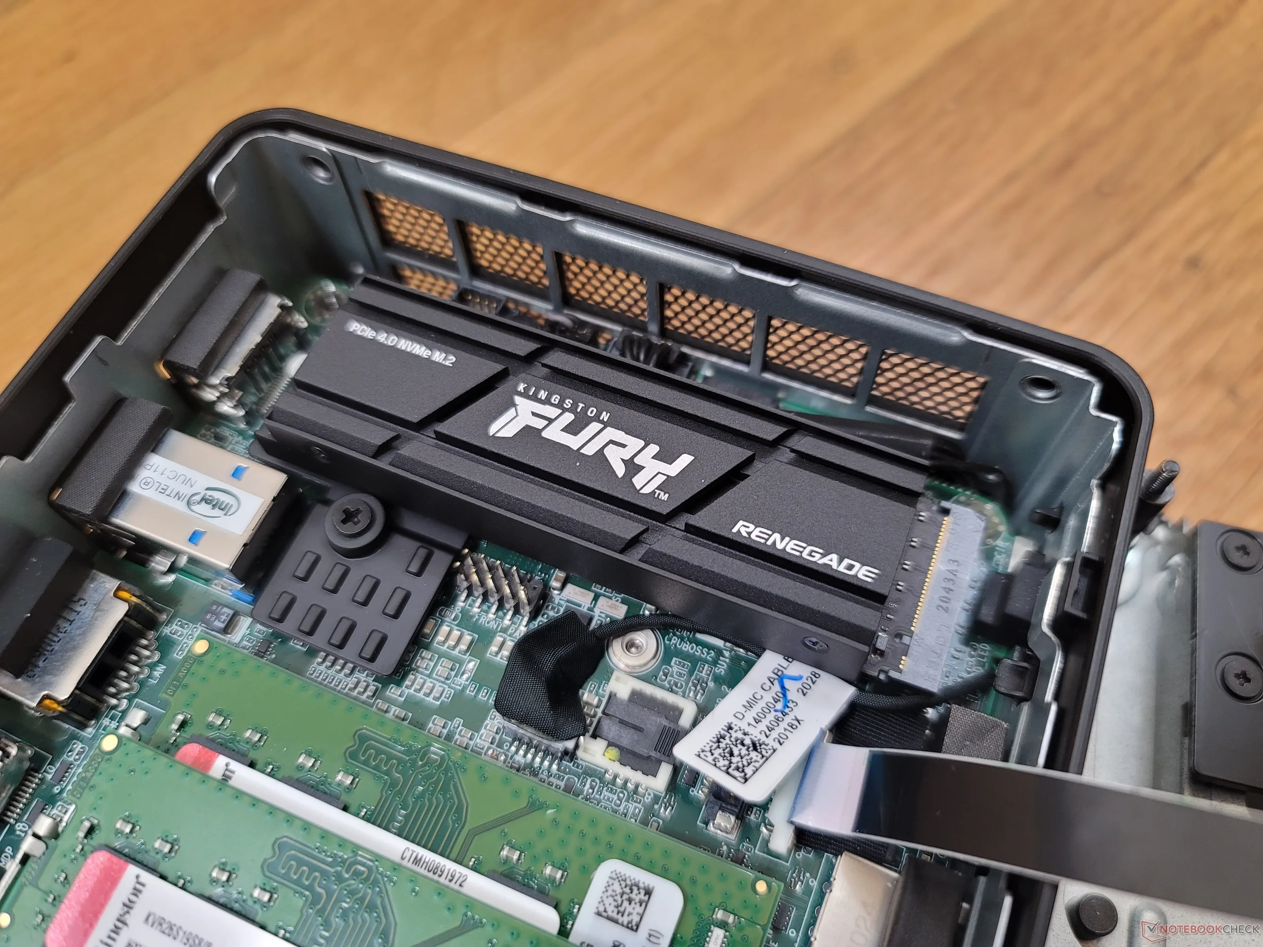 Voor onze host PC gebruikten we dezelfde Intel NUC11 mini PC die PCIe4 x4 NVMe SSD's ondersteunt. Het chassis bevat zijn eigen SSD koellichaam, maar wij gebruiken alleen het koellichaam dat bij de Kingston-schijf is geleverd.
