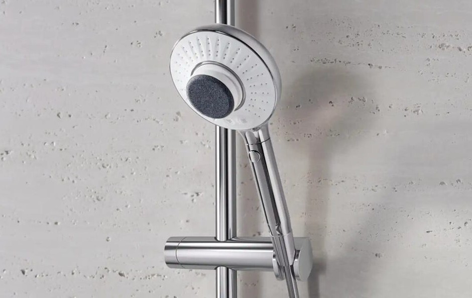 Op de beursvloer van Kohler was de SpaViva handdouche een lust voor het oog. De nieuwe douchekop van Kohler bestaat uit een tol met accessoires voor scrubben, masseren en puimsteen scrubben.