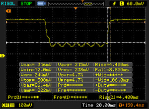 De achtergrondverlichting van het scherm flikkert op 59.5 Hz (in het slechtste geval, bijvoorbeeld bij gebruik van PWM) . De frequentie van 59.5 Hz is erg laag en kan dus aanleiding geven tot geïrriteerde ogen en hoofdpijn bij langer gebruik. Ter vergelijking: 53 % van alle geteste toestellen maakten geen gebruik van PWM om de schermhelderheid te verlagen. Als het wel werd gebruikt, werd een gemiddelde van 8111 (minimum: 5 - maximum: 343500) Hz waargenomen. | |||