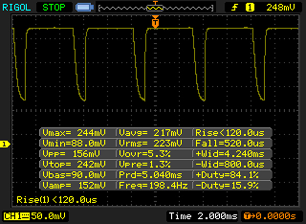 De achtergrondverlichting van het scherm flikkert op 198 Hz (in het slechtste geval, bijvoorbeeld bij gebruik van PWM) aan een helderheid van 90 % en lager. Boven deze helderheid zou er geen flickering / PWM mogen optreden. De frequentie van 198 Hz is redelijk laag en de meeste mensen die gevoelig zijn aan flickering kunnen dit dus waarnemen of geïrriteerde ogen krijgen (gebruikmakend van de vermelde helderheid en lager). Ter vergelijking: 53 % van alle geteste toestellen maakten geen gebruik van PWM om de schermhelderheid te verlagen. Als het wel werd gebruikt, werd een gemiddelde van 8142 (minimum: 5 - maximum: 343500) Hz waargenomen. | |||
