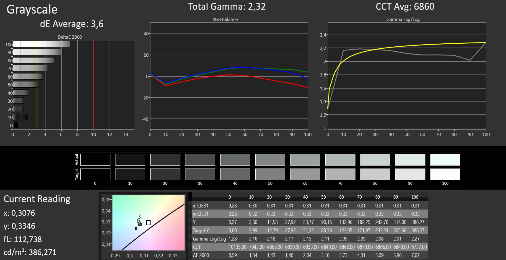 ΔE Greyscale Calman: 3.6 | ∀{0.09-98 Ø5}