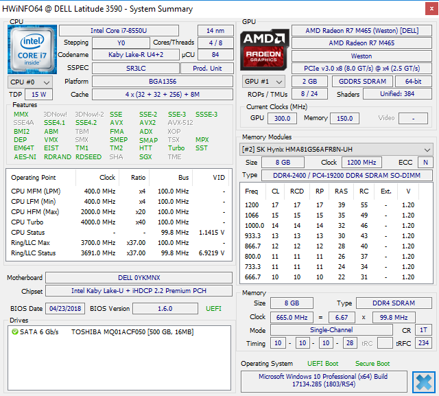 | Dell Latitude 15 3590-K8JP Radeon 530, i5-8550U, Toshiba MQ01ACF050 | Dell XPS 15 2018 i5 FHD 97Wh GeForce GTX 1050 Mobile, i5-8300H, Lite-On CA3-8D256-Q11 | Acer TravelMate P2510-G2-MG-50WE GeForce MX130, i5-8250U, SK Hynix HFS256G39TND-N210A | HP ProBook 650 G4 3UP57EA UHD Graphics 620, i5-8250U, Toshiba XG5 KXG50ZNV256G | Fujitsu Lifebook E558 E5580MP581DE UHD Graphics 620, i5-8250U, Micron 1100 MTFDDAV256TBN | HP EliteBook 755 G5 3UN79EA Vega 10, R7 2700U, Toshiba XG5 KXG50ZNV512G | Dell Latitude 5591 GeForce MX130, i7-8850H, Toshiba XG5 KXG50ZNV512G | |