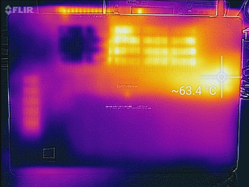 (+) Bij onbelast gebruik bedraagt de gemiddelde temperatuur voor de bovenzijde 31.1 °C / 88 F, vergeleken met het apparaatgemiddelde van 29.5 °C / 85 F.