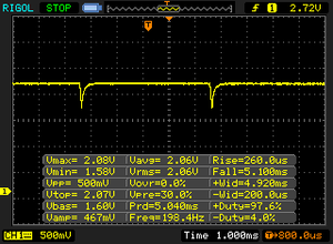 De achtergrondverlichting van het scherm flikkert op 198 Hz (in het slechtste geval, bijvoorbeeld bij gebruik van PWM) aan een helderheid van 25 % en lager. Boven deze helderheid zou er geen flickering / PWM mogen optreden. De frequentie van 198 Hz is redelijk laag en de meeste mensen die gevoelig zijn aan flickering kunnen dit dus waarnemen of geïrriteerde ogen krijgen (gebruikmakend van de vermelde helderheid en lager). Ter vergelijking: 53 % van alle geteste toestellen maakten geen gebruik van PWM om de schermhelderheid te verlagen. Als het wel werd gebruikt, werd een gemiddelde van 8118 (minimum: 5 - maximum: 343500) Hz waargenomen. | |||