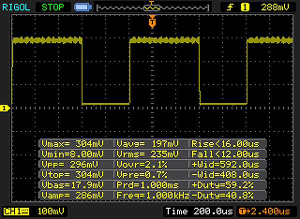 | PWM Frequency (Hz) | 1000 ? | 26040 ? | 199.2 ? | 200 ? | |