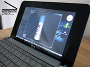 De diagonaal van dit display is 8.9 inch. Desondanks is de inheemse resolutie 1280x768 pixels. In contrast met de EEE serie en vele andere mini notebooks is het daardoor mogelijk om te werken zoals je gewent bent. Het desktop is voldoende groot om websites en applicaties net zo te laten zien als op een 15.4 inch notebook. De voorkant is hierdoor echter wel kleiner, maar toch erg scherp en goed leesbaar.