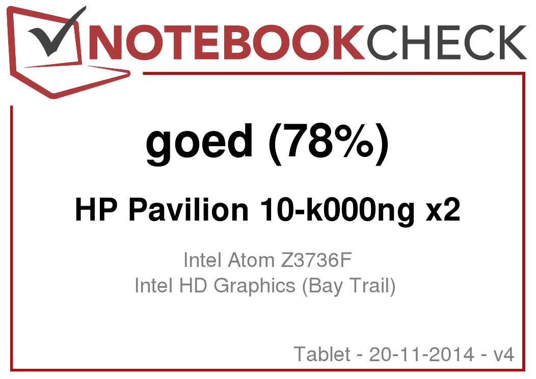 De hoge resolutie en het erg hoge helderheidsniveau van het WUXGA scherm (1920 x 1200 pixels) maken Acer's Aspire Switch 10 SW5-012-13DP een aanrader. De Asus Transformer Book T100TA-C1-GR heeft de beste batterijduur van de modellen binnen ons referentiekader. Wie een Windows tablet met mobiele internet verbinding zoekt, verwijzen we naar Schenker's Element of Wortmann's Terra Pad 1060. Beiden zijn verkrijgbaar met een 3G modem. Een "Volk's Tablet" van Trekstor werd uitgebracht ten tijde van onze test. Deze tablet met 3G modem wordt verkocht voor €250 (€200 zonder 3G modem). Zijn configuratie is praktisch identiek aan die van de Pavilion, want alleen de processor (Atom Z3735F) heeft een iets lagere Turbo snelheid. Wanneer de prijs van het toetsenbord dock daarbij wordt opgeteld (ongeveer €50), dan is het apparaat bijna een koopje.