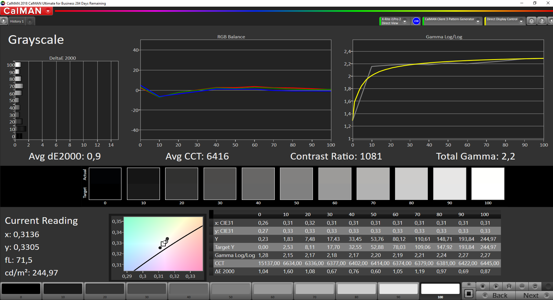 ΔE Greyscale Calman: 3.8 | ∀{0.09-98 Ø5}