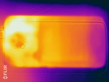(+) Bij onbelast gebruik bedraagt de gemiddelde temperatuur voor de bovenzijde 29.8 °C / 86 F, vergeleken met het apparaatgemiddelde van 32.9 °C / 91 F.